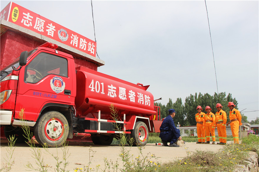 “以前我也是從事消防工作的,在企業干專職消防員多年,深知消防安全的重要性,一旦發生火災,時間緊迫。白彥鎮離縣城40多公里,我們村距離鎮上還有5里路,加上一些村道路非常不好走,村里如果發生火災,縣消防大隊從縣城趕來得需要一個多小時,遠水救不了近火,我就決定購買一輛消防車,建一個志愿者消防隊,為附近村民義務滅火。”