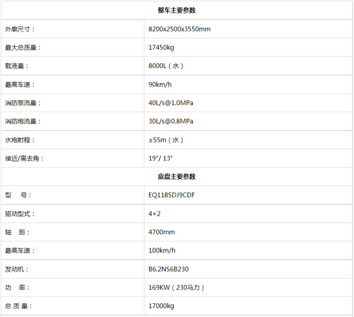二、東風8噸消防車參數圖片